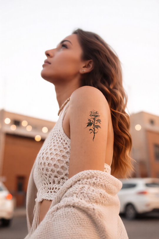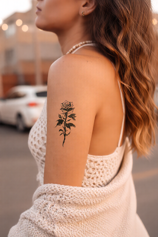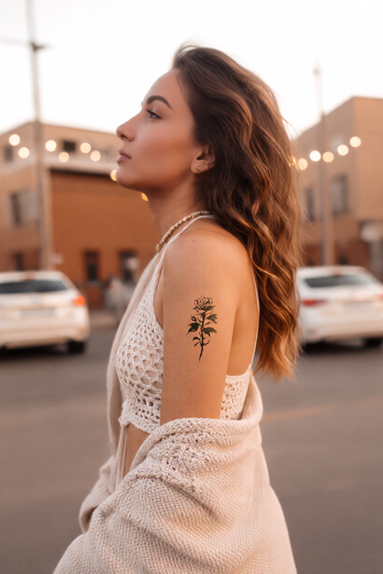 4 reviewsSoft Petals. Sharp Energy.This isn’t just a rose — it’s a whole vibe.Bold black lines meet delicate curves in this statement tattoo that balances softness with edge. Whether it’s your first ink or your next big...Precio regular $11.99Precio regular $11.99